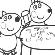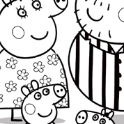 Kolorowanki do wydruku - zabawy dla dzieci do druku - Świnka Peppa i jej brat Georg, jej rodzice i przyjaciele