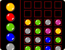 Celem gry jest odgadnięcie kombinacji 4 krążków wybranych spośród 6 kolorów. Kolory w kombinacji mogą się powtarzać. Od dołu planszy układamy swoją kombinację krążków. Po naciśnięciu przycisku "Sprawdź" komputer informuje nas ile kolorów krążków jest trafnie wybranych i ile jest położonych w dobrym miejscu. Na znalezienie prawidłowego układu mamy 10 szans. By zacząć grę od nowa wciśnij "Reset"
